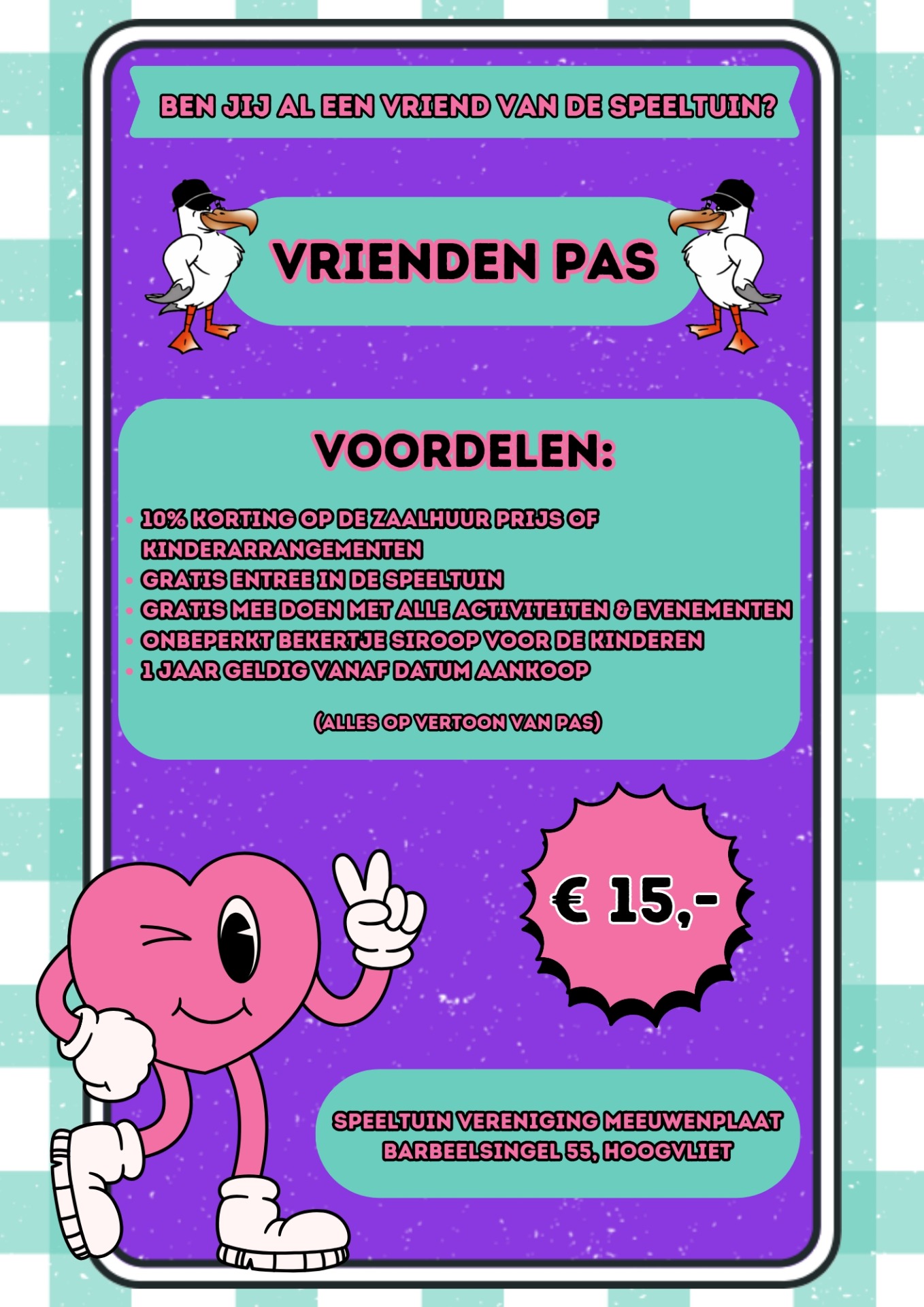 De Vrienden Pas kunt u kopen aan de balie op de speeltuin of bestellen het onderstaande formulier.
