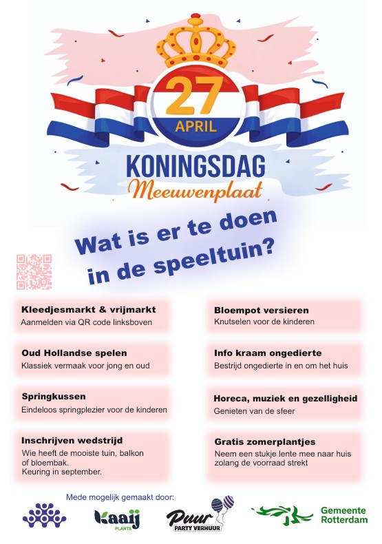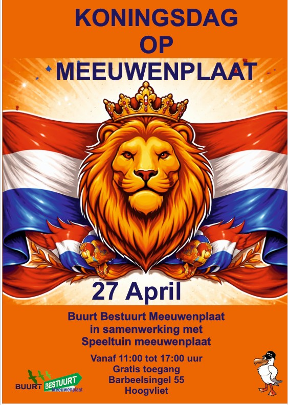Kom gezellig langs en vier samen Koningsdag in de speeltuin Meeuwenplaat!